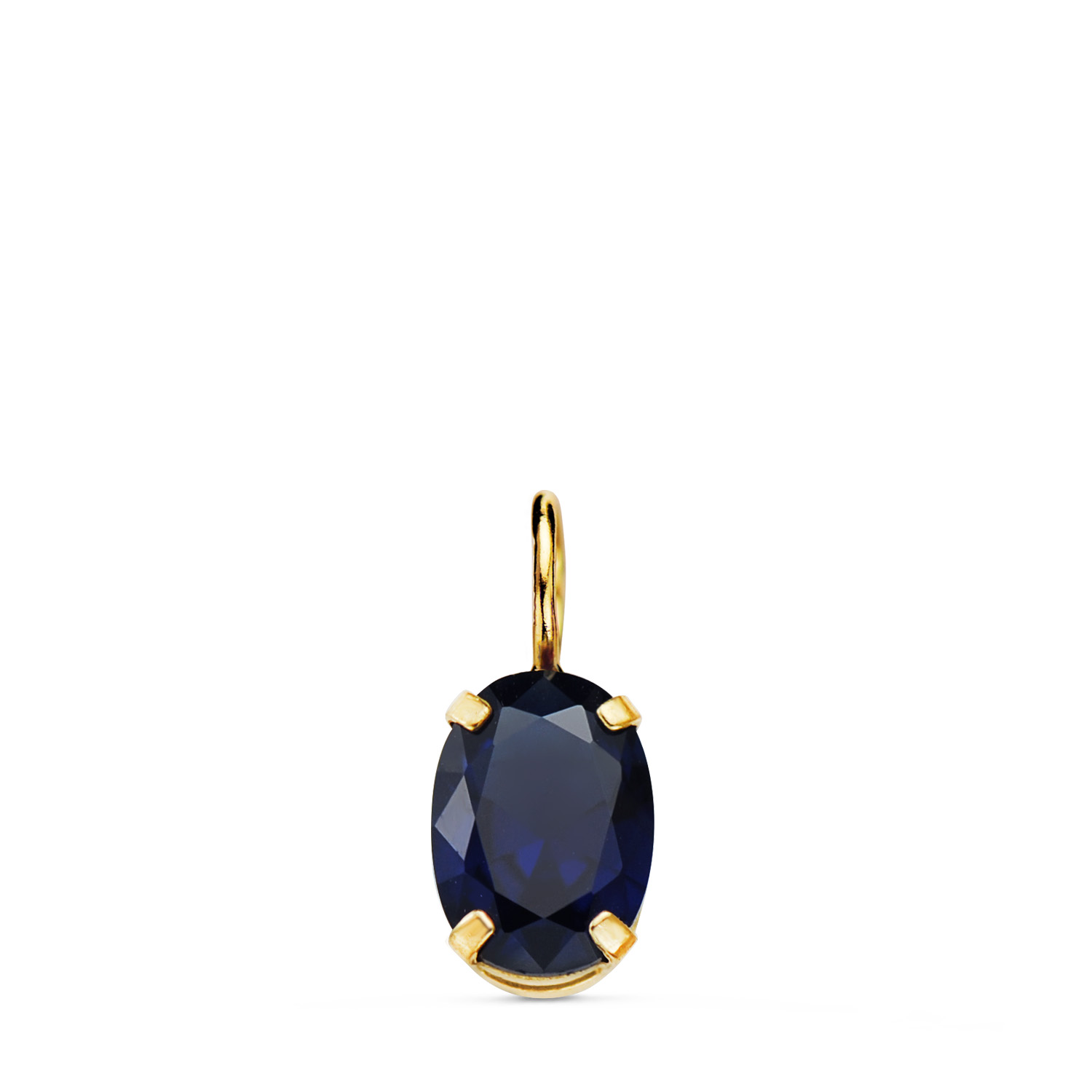 18K COLGANTE ORO AMARILLO OVAL PIEDRA COLOR AZUL 7 X 5 MM.