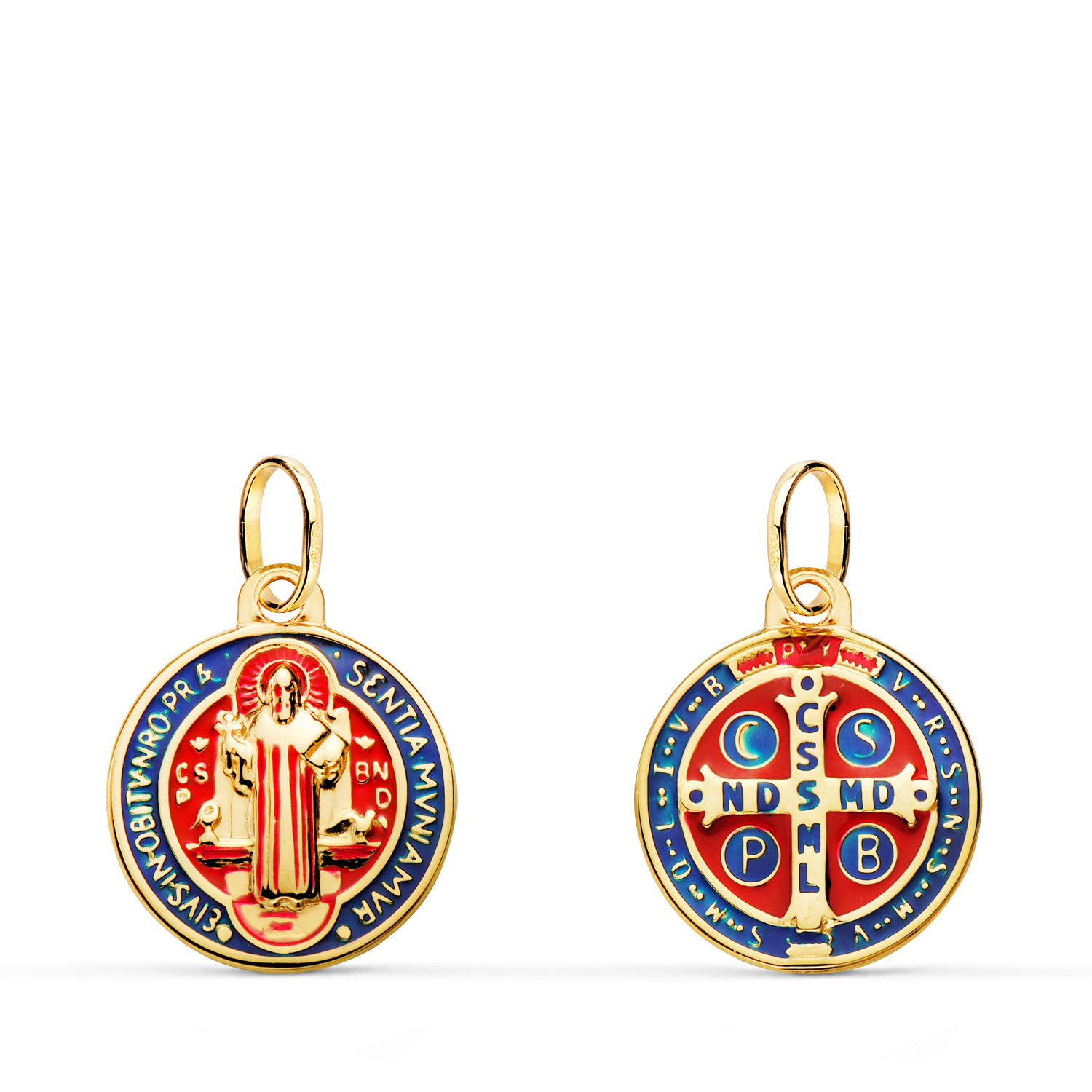 18K ESCAPULARIO ORO AMARILLO SAN BENITO MONJE EN BRILLO ESMALTADO. 14 MM