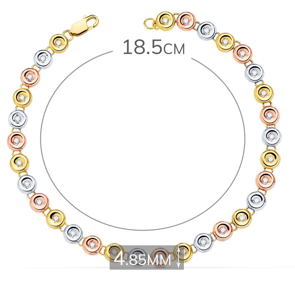 18K PULSERA RIVIERE ORO TRICOLOR 31 DIAMANTES. 0.434 QTS. 4.85 MM 18.5 CM G-VS2