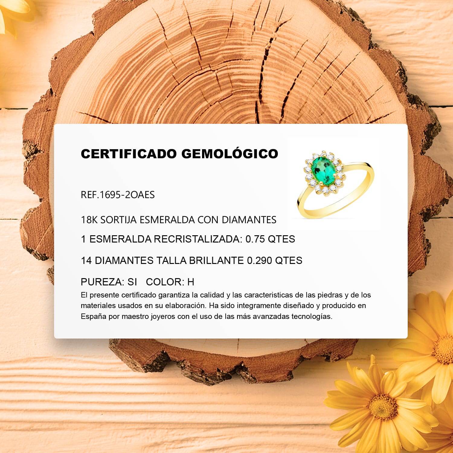 18K SORTIJA ORO AMARILLO ESMERALDA 0.75 QTS. DIAMANTES 0.290 QTS. SI-H